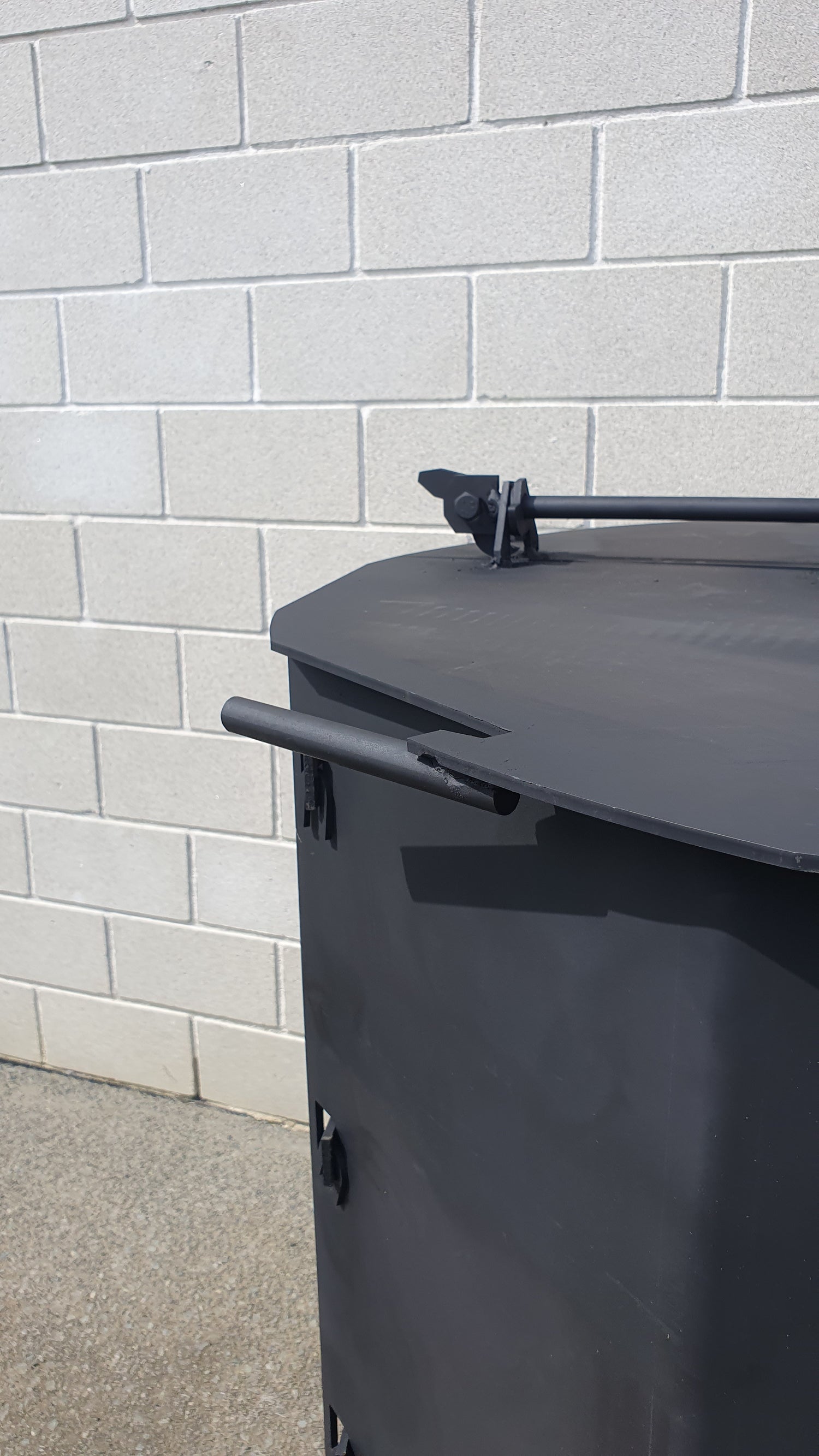 This heavy-duty lid is designed for effortless operation and added safety. The integrated locking mechanism securely holds the lid in the upright position, allowing for hands-free loading and improved user control. By keeping the lid stable during use, it reduces the risk of accidental closure—making loading safer, quicker, and more convenient.